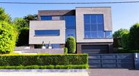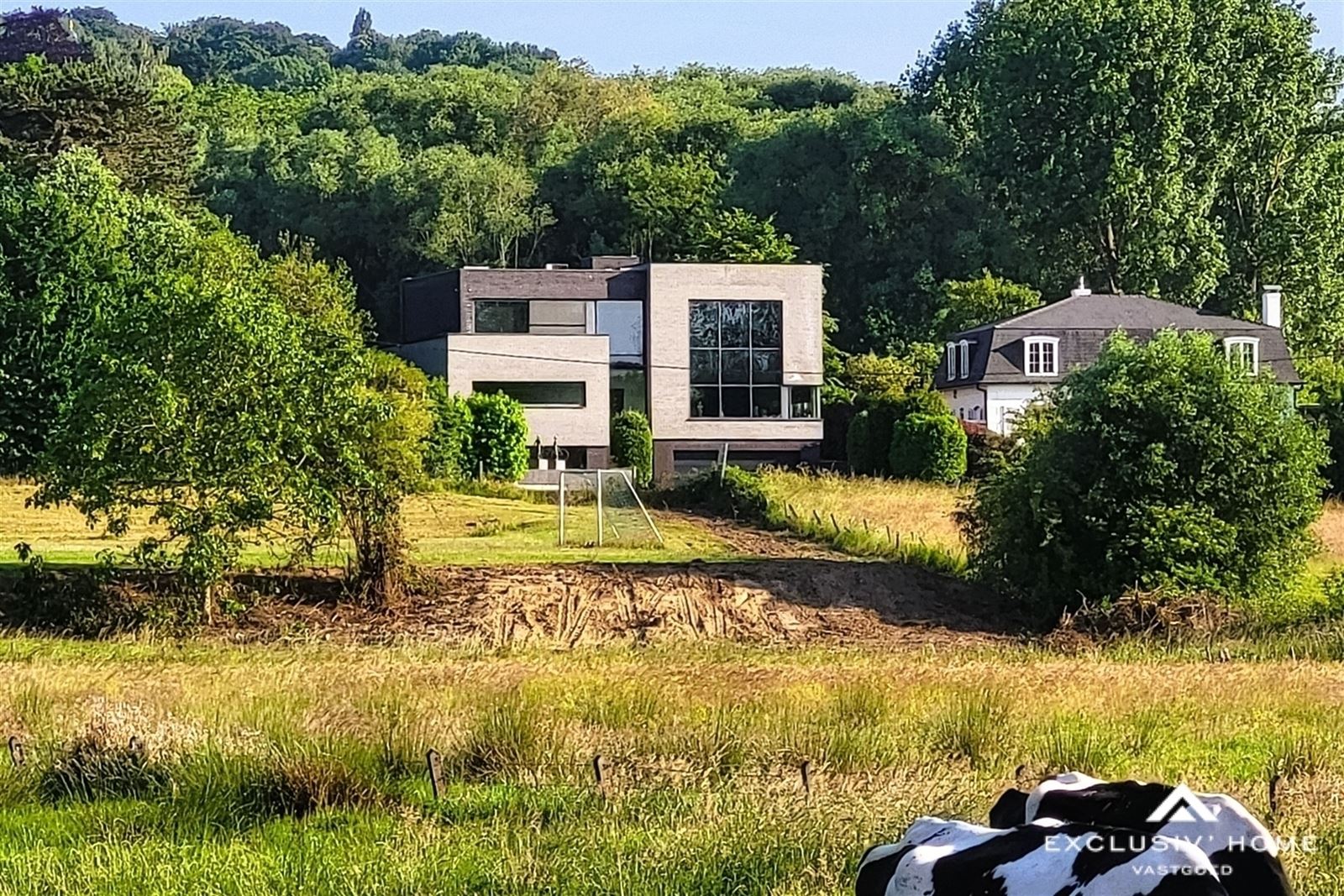 This exclusive designer villa is located in a quiet, rural suburb of Geraardsbergen, just 2 km from the city centre. Impressive in both size and architecture, the villa is offered together with a rear garden and meadow, totalling 1.6 ha.